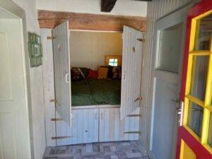 The old bakehouse has been transformed into a cozy residence with a cozy large (2 x 3 meters) box bed. The house has a beautiful bathroom and a fully equipped kitchen. There are 2 comfortable armchairs in the living room. The furnishings are inspired by the old Dutch masters.